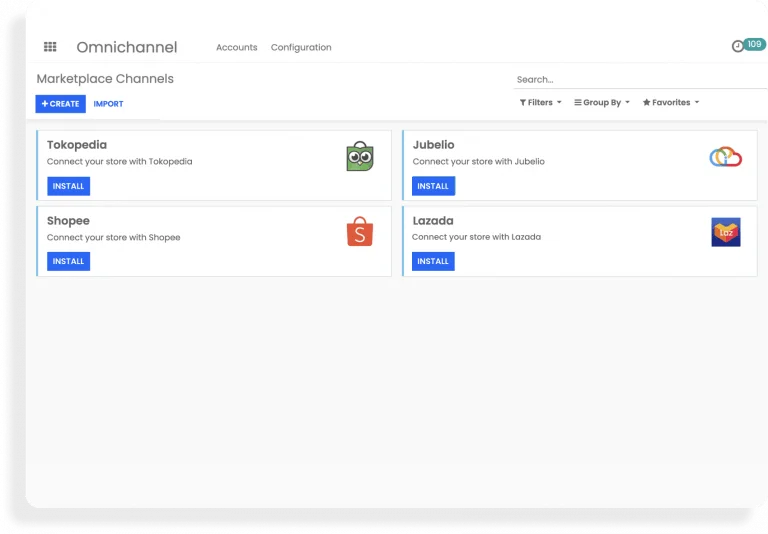 ERP retail juga memiliki fitur omnichannel yang membantu Anda untuk mengintegrasikan bisnis dengan marketplace. Dengan modul omnichannel, Anda dapat mengelola data pada berbagai marketplace secara otomatis melalui satu dashboard.