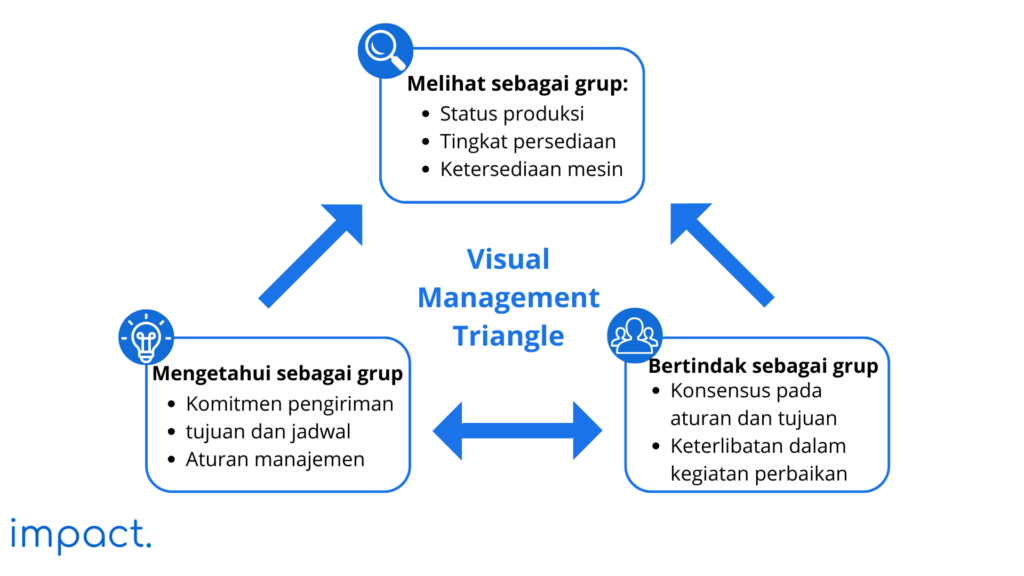 Michel Greif dalam bukunya, The Visual Factory, mendefinisikan segitiga visual management berikut: